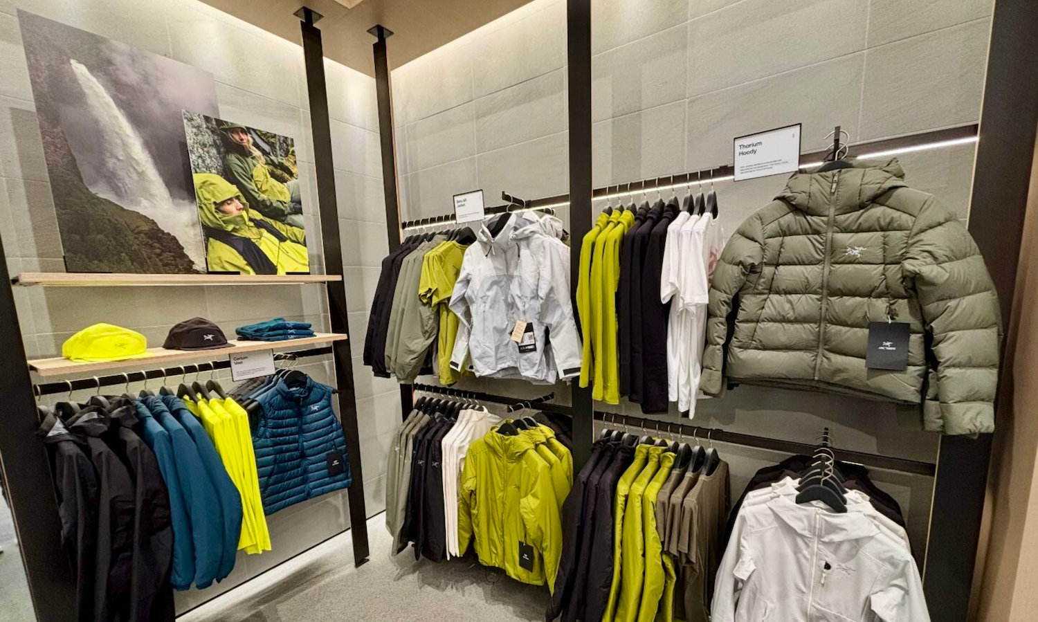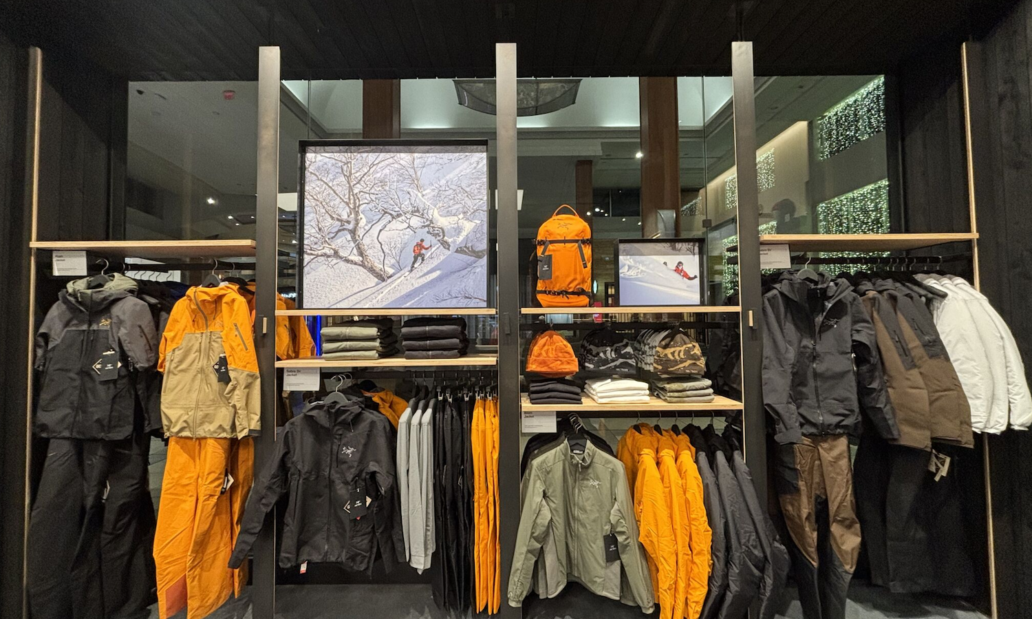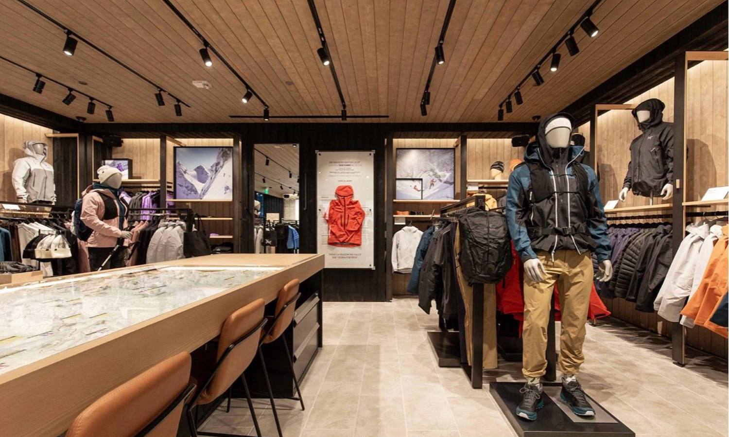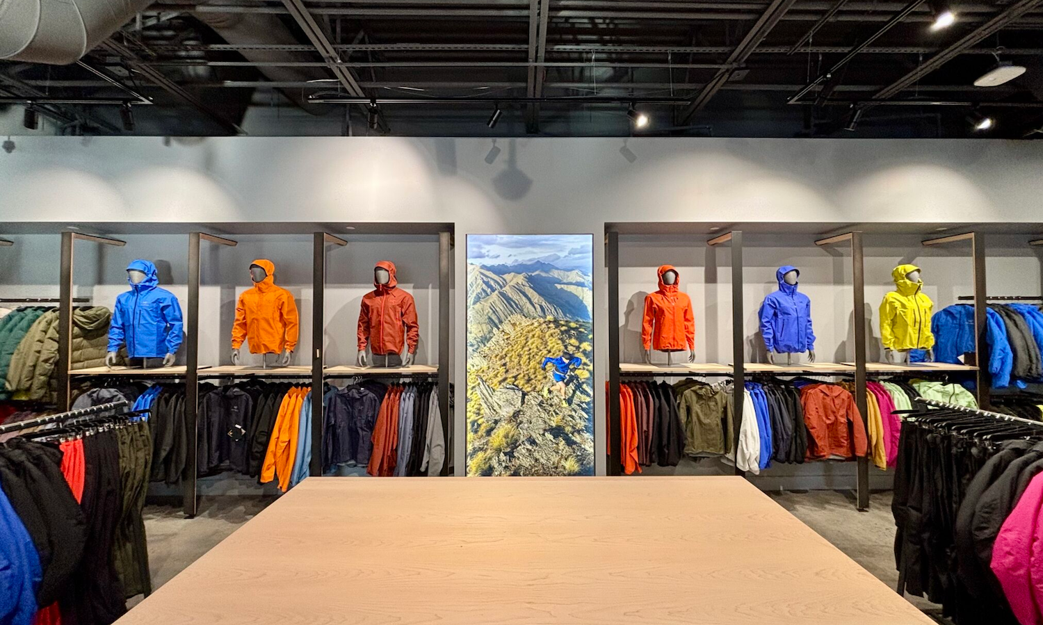 Our work with Arc’teryx continued this year with the deployment of custom wall systems across North America. These modular units feature integrated lighting and adjustable shelving tailored to technical apparel.